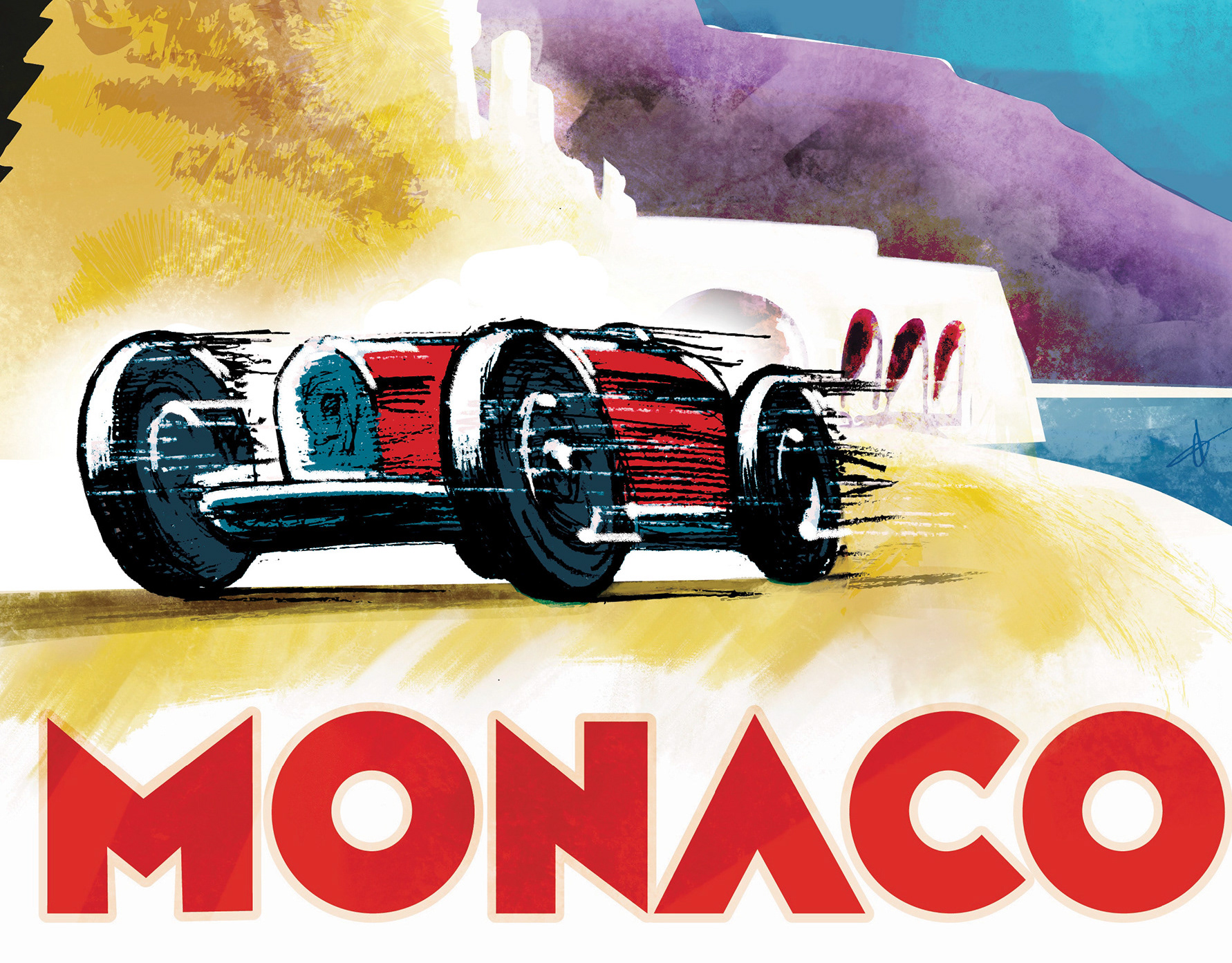 Poster concepts of the center-piece of a Formula 1 season, the race in Monaco. This piece, developed to hearken vintage poster visual approaches where hand-drawn imagery was king and approaches that emphasized speed and drama. #monaco #f1 #formula1