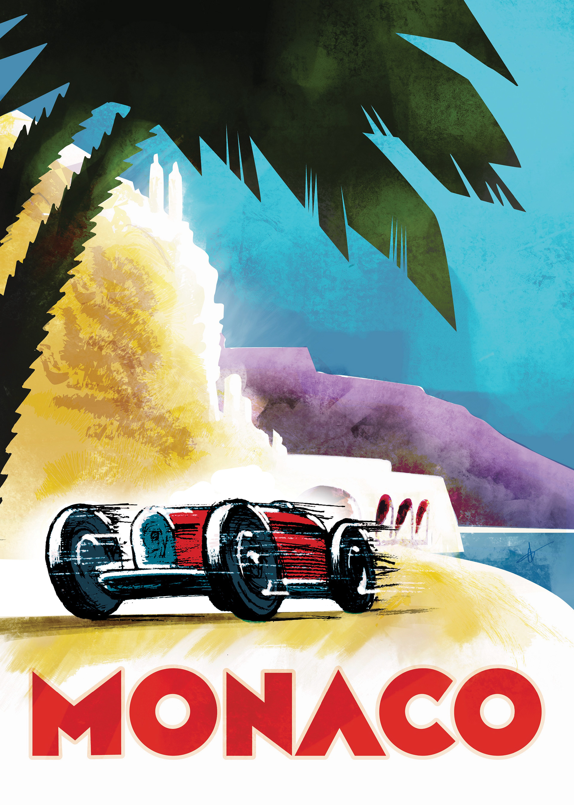 Poster concepts of the center-piece of a Formula 1 season, the race in Monaco. This piece, developed to hearken vintage poster visual approaches where hand-drawn imagery was king and approaches that emphasized speed and drama.